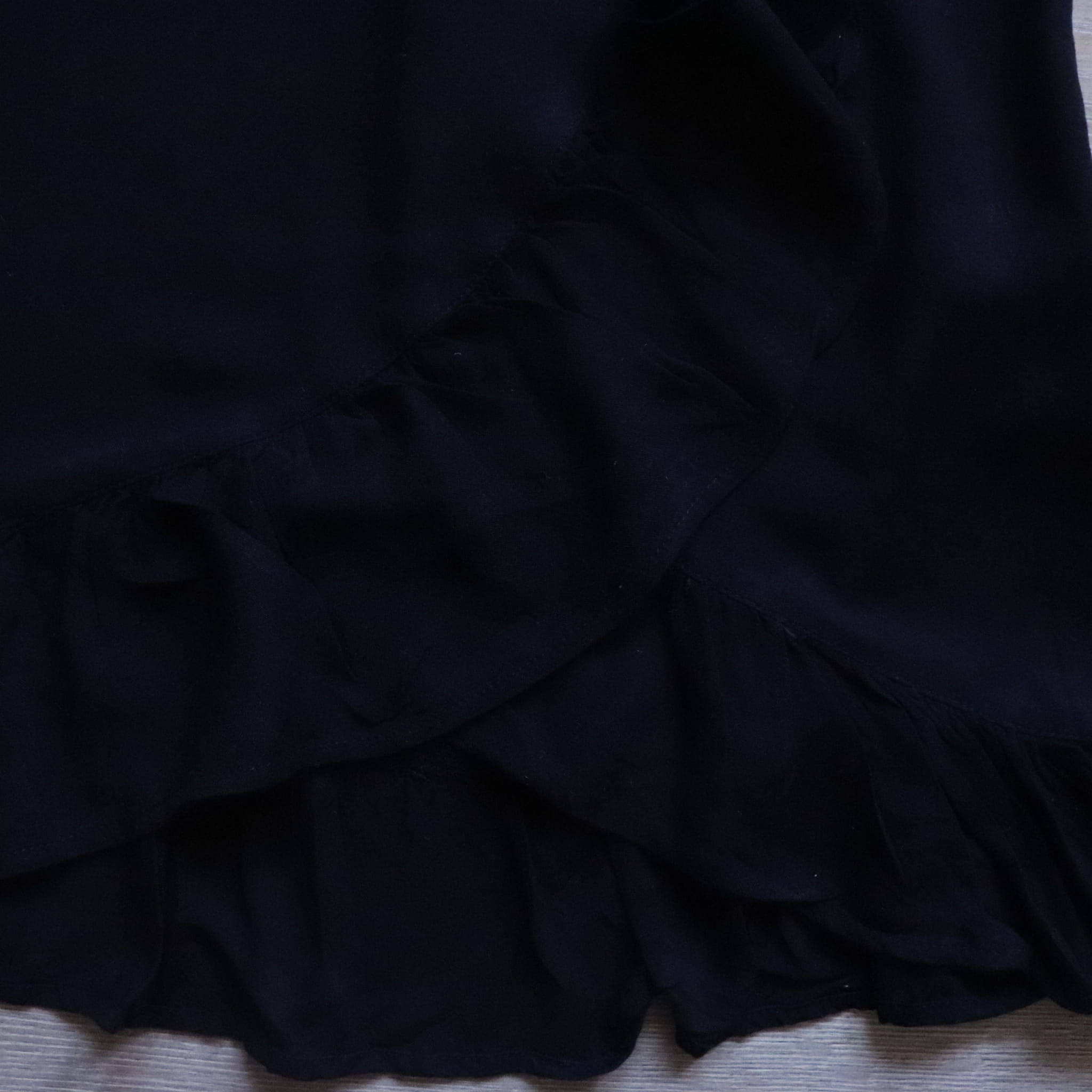 Stan: bez wad, w pasie gumka, spódniczka cieniutka, wiskozowa, na dole efektywna falbanka.