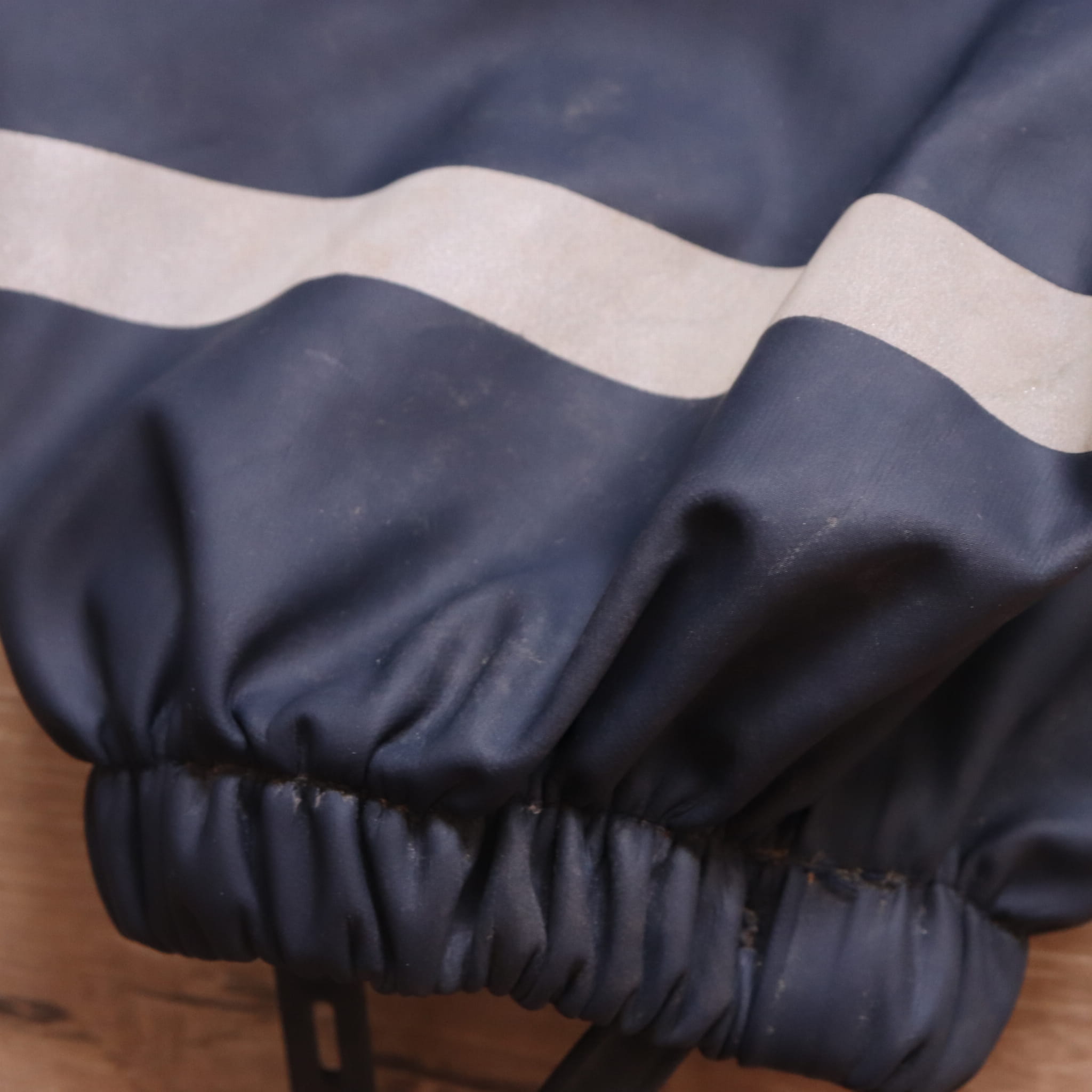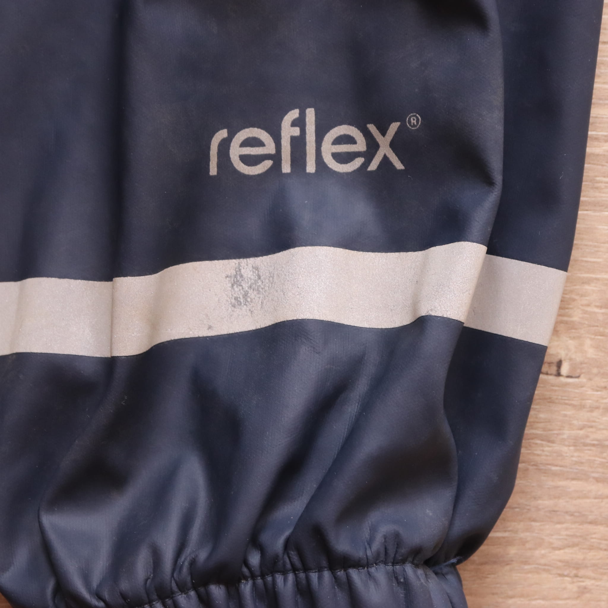 Stan: delikatne przybrudzenia i otarcie odblasku na lewej nogawce