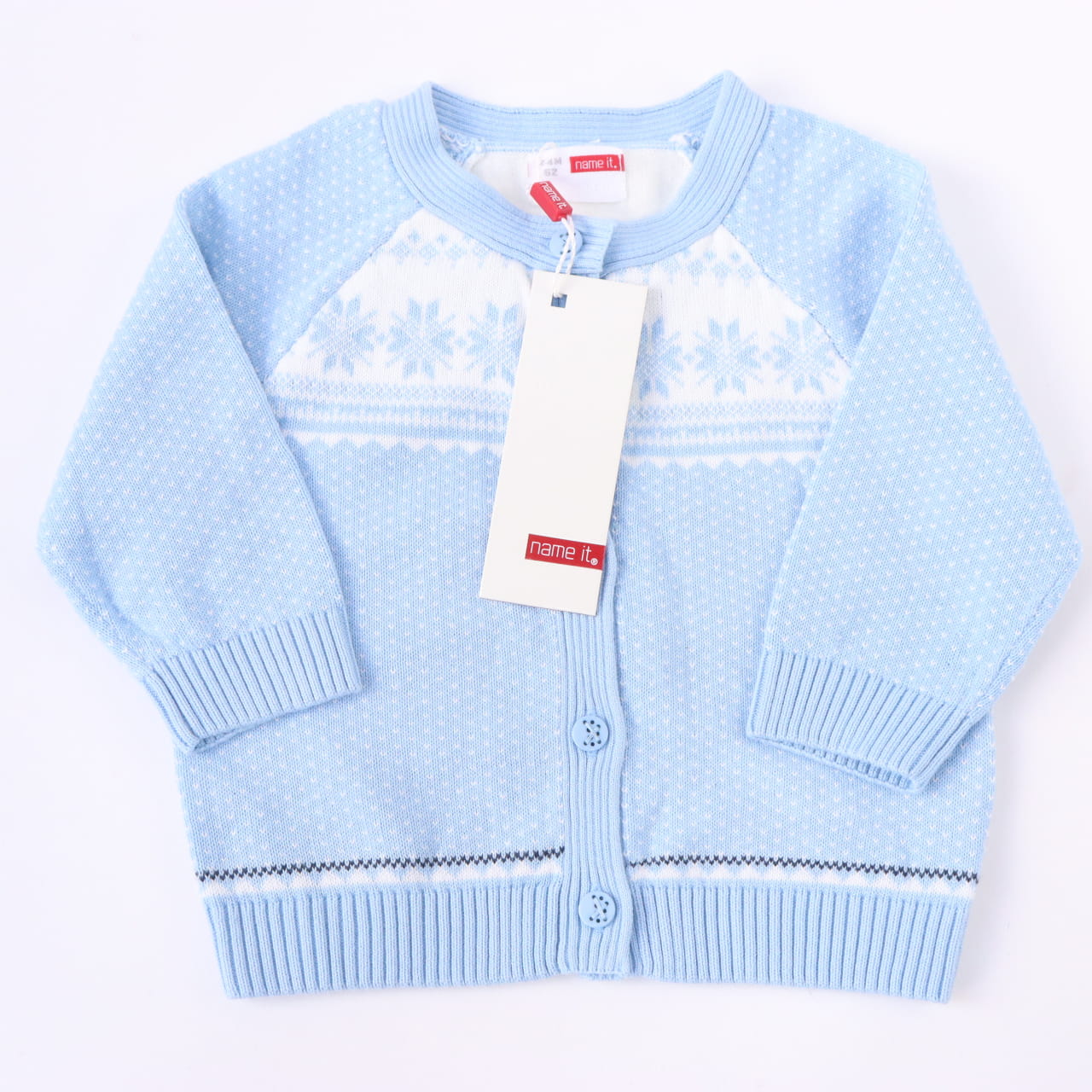 Sweter Name it 62 niebieski ze śnieżynkami